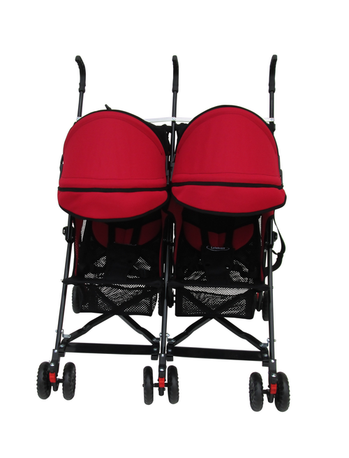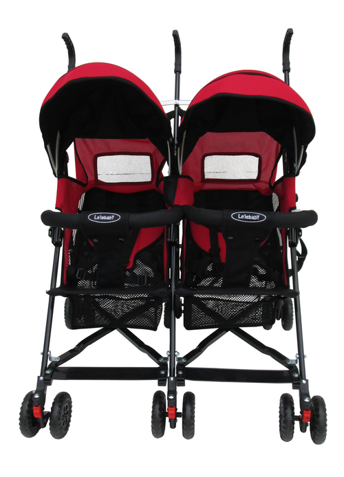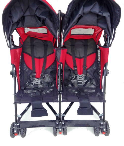 雙人推車:7.3KG雙人經典款-可坐可躺(椅背角度100-170度任意調整),售價4,800元,五點式安全帶,可加裝可拆式扶手(售價550元雙人共用),乘載至30KG,最大優點是可平躺雙人推車,車重僅7.3KG.新生兒可開始躺.(0歲-4歲可用)